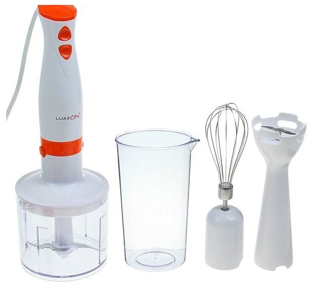 Type: submersible, maximum power: 350 W, material of the submersible part: plastic, attachments: whisk, grinder, included: measuring cup, modes: turbo mode