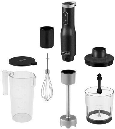 Type: submersible, maximum power: 1200 W, material of the submersible part: metal, attachments: whisk, chopper, set includes: measuring cup, additional functions: ice crush, smooth speed adjustment, p