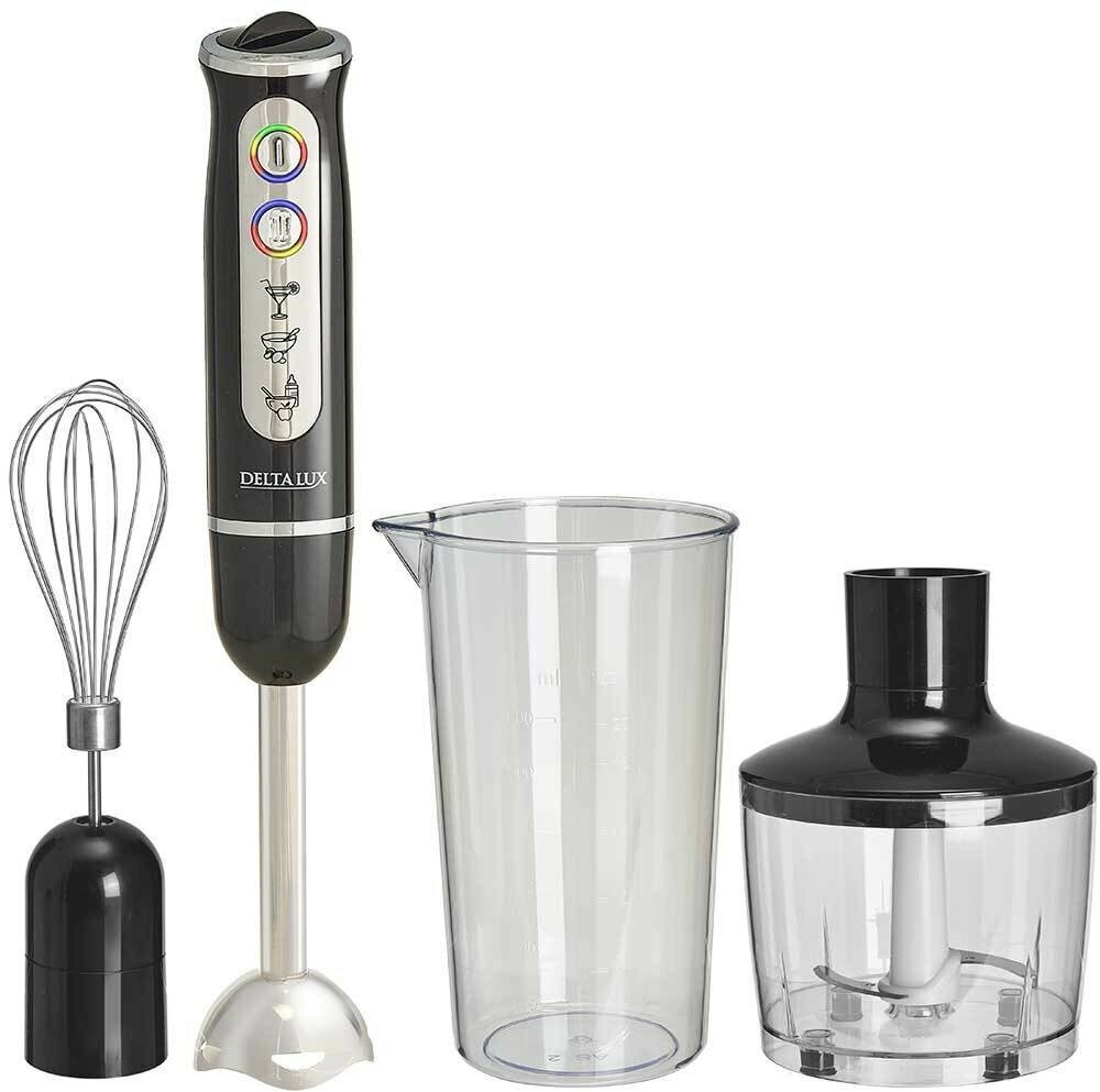 Type: submersible, maximum power: 800 W, submersible part material: metal, jug material: plastic, nozzles: whisk for whipping, for mashing, chopper, grinder, grater, nozzle blender, included