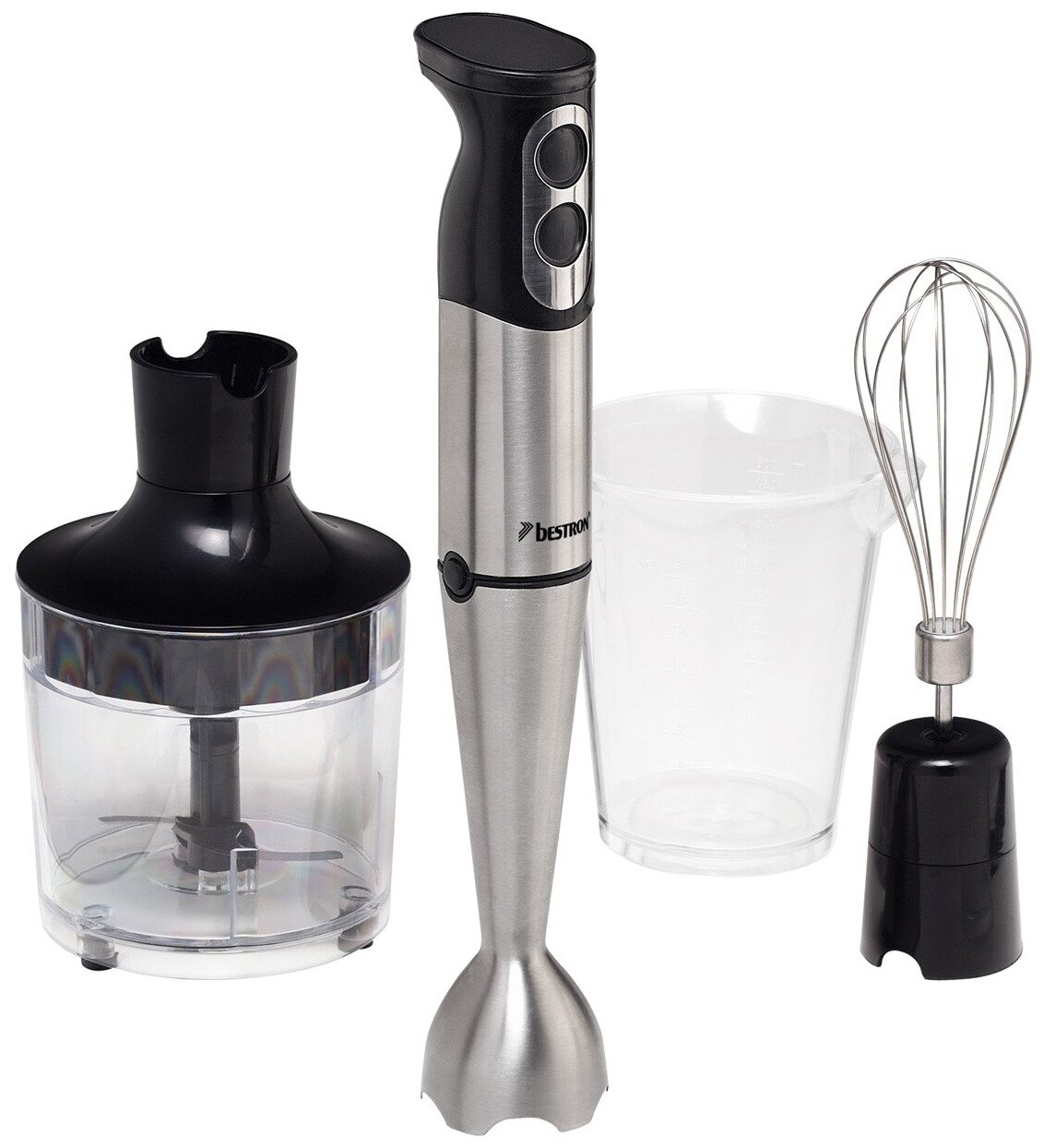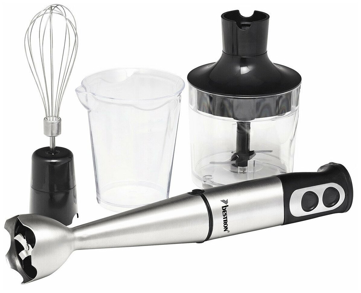 Type: submersible, maximum power: 500 W, material of the submersible: metal, attachments: whisk, grinder, included: measuring cup, number of speeds: 2