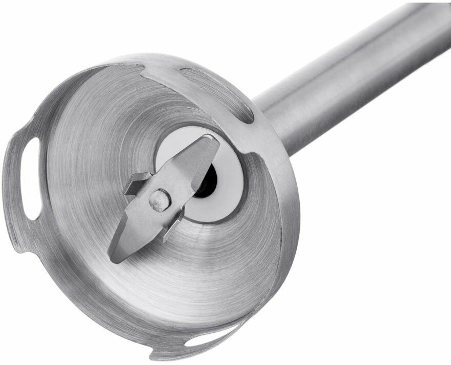 Type: submersible, maximum power: 1000 W, material of the submersible part: metal, attachments: whisk for whipping, for mashing, grinder, included: measuring cup, additional functions: ice pick, smooth speed