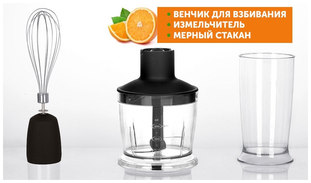 Type: submersible, maximum power: 1000 W, submersible material: metal, jug material: plastic, attachments: whisk, chopper, blender nozzle, set includes: measuring cup, chopper, add