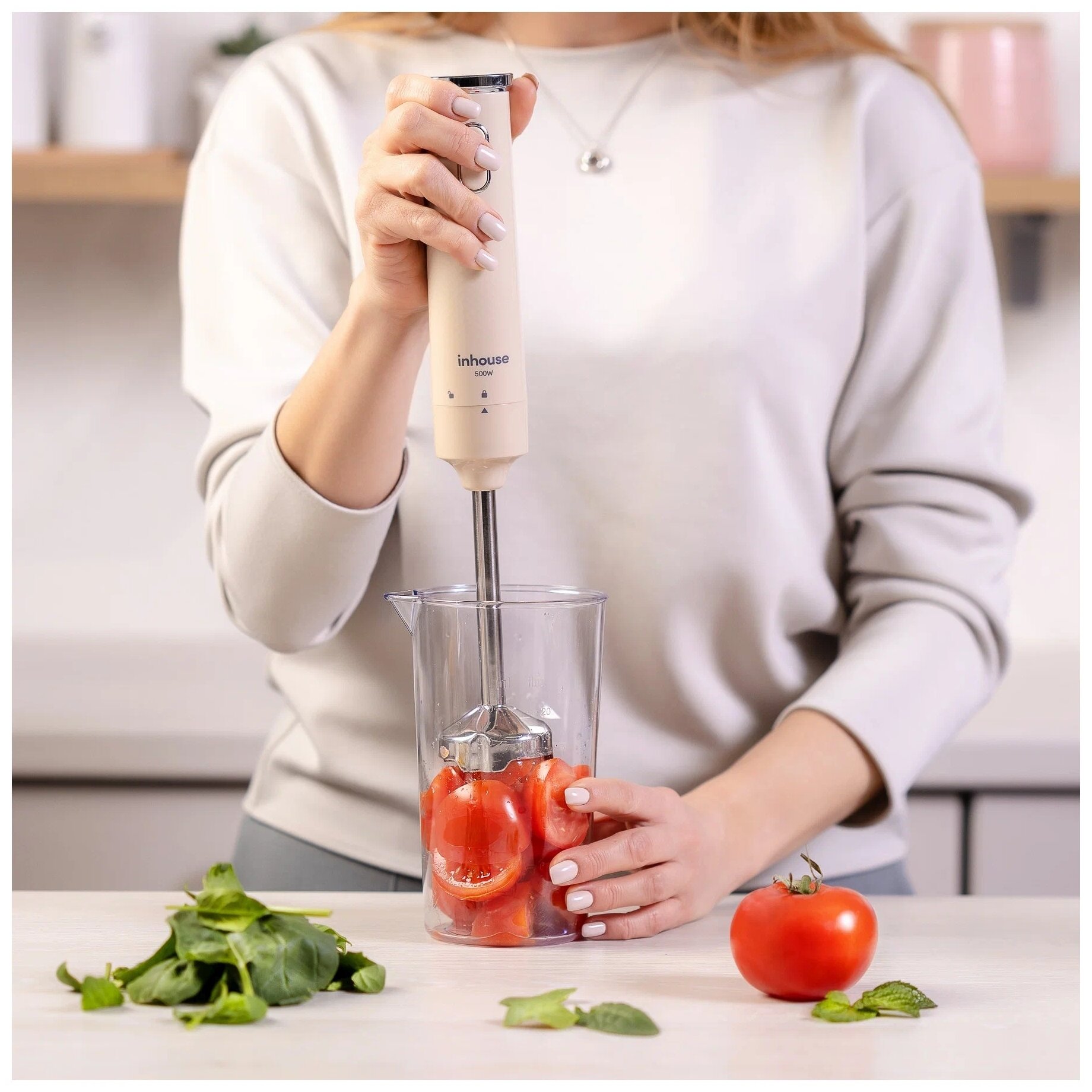 Type: submersible, maximum power: 500 W, material of the immersion part: metal, nozzles: for mashing, modes: pulse, design features: metal nozzle-mashed, weight: 0.57 kg