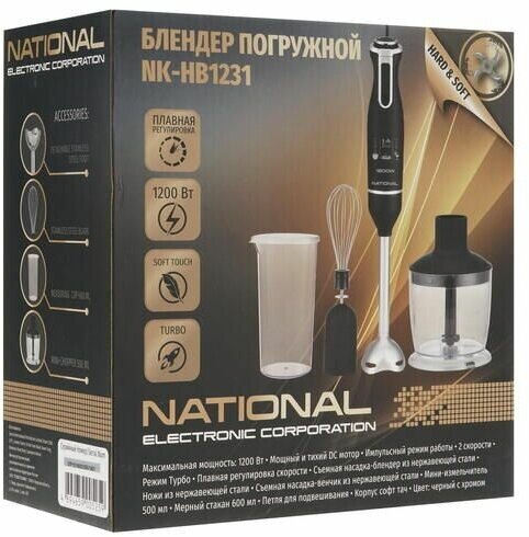 Type: submersible, maximum power: 1000 W, material of the submersible part: metal, attachments: whisk for whipping, for mashing, grinder, included: measuring cup, additional functions: ice pick, smooth speed