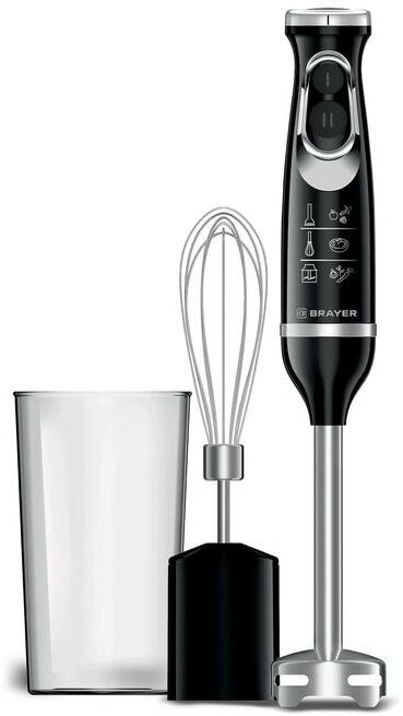 Type: submersible, maximum power: 800 W, material of the submersible part: metal, attachments: whisk, chopper, grater, included: measuring cup, additional functions: stepless speed adjustment, capacity