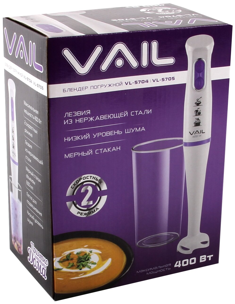 Type: submersible, maximum power: 400 W, material of the submersible: plastic, nozzles: grater, included: measuring cup, modes: turbo mode, weight: 0.75 kg