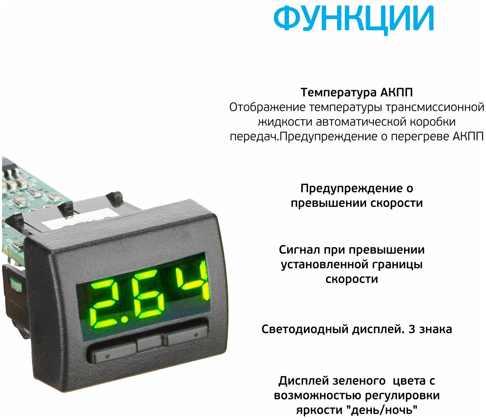 Reading engine ECU parameters, maintaining trip statistics, warning of critical parameter values, drying candles, forced activation of the engine cooling fan, reading and resetting ECU errors, resetting ECU adaptations, automatic transmission coolant temp