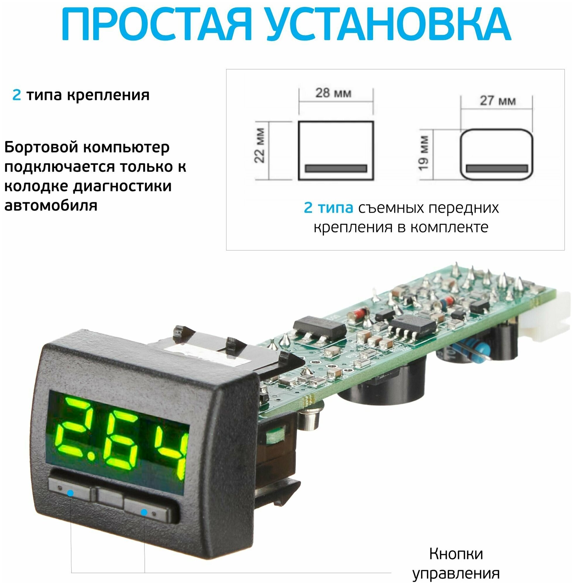 Trip computer, display: text, installation: on the dashboard, OBD-II, brightness control