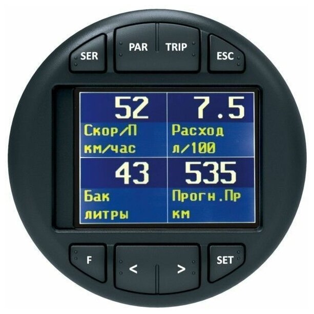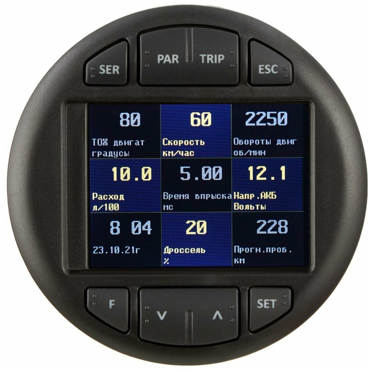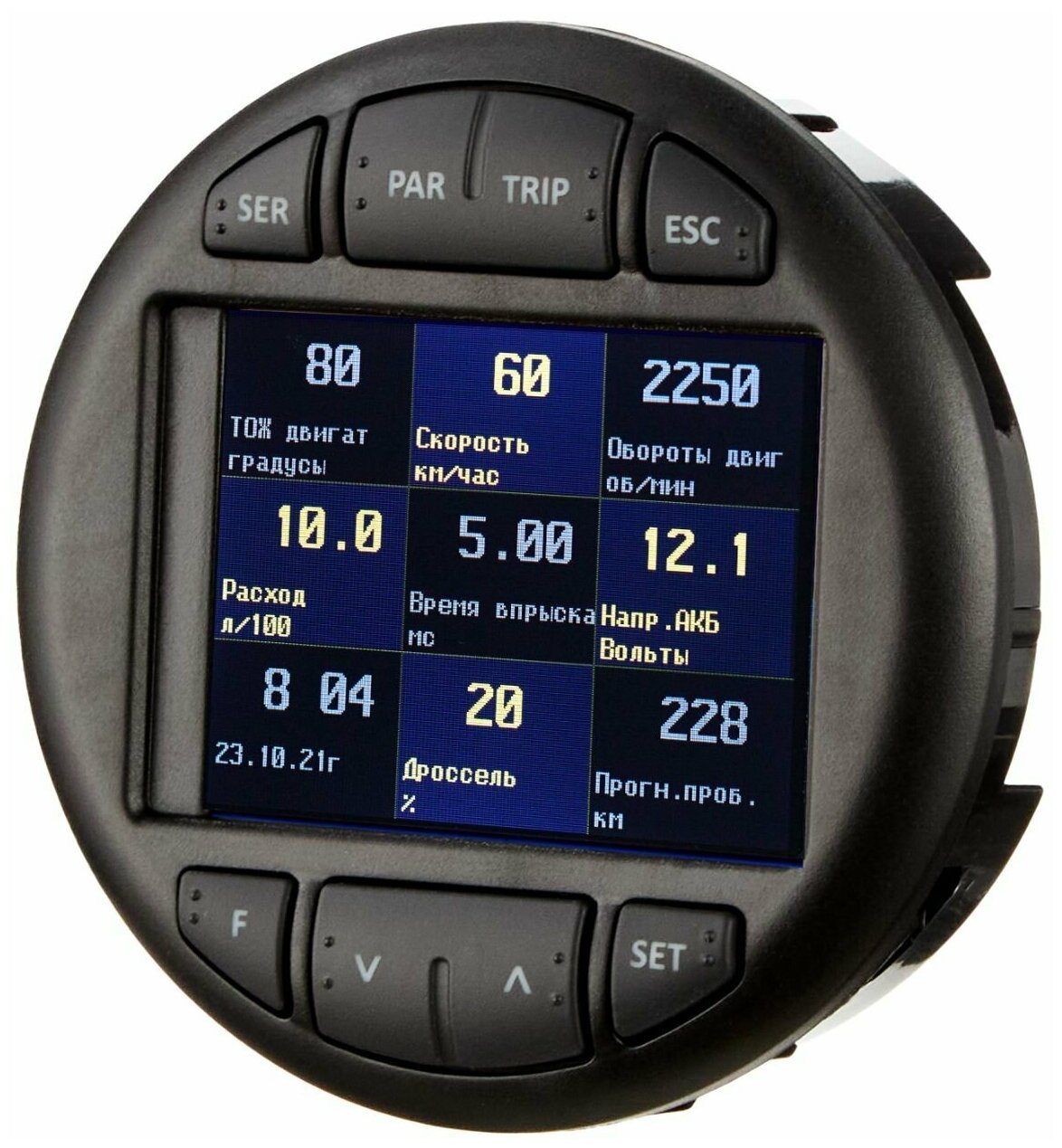 Trip computer, display: graphic, installation: on the dashboard, OBD-II, remote temperature sensor, work log, multi-display, oscilloscope