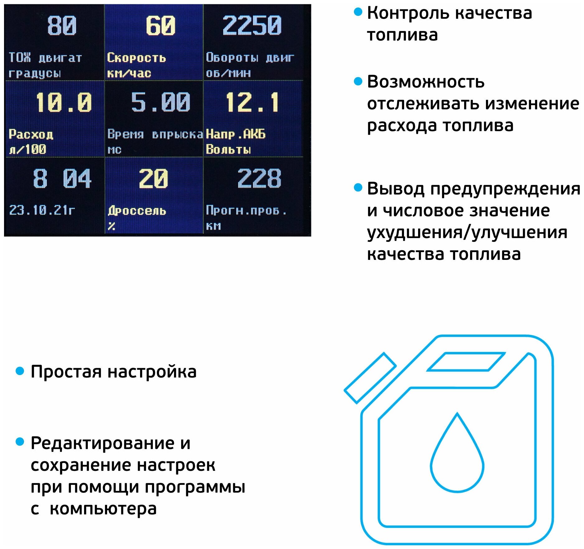 On-board computer, display: graphic, installation: on the dashboard, OBD-II, voice output, additional connection. modules