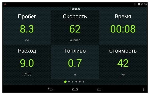 Engine speed, remaining fuel in the tank, fuel consumption, average trip time, average trip distance, average fuel consumption, average speed