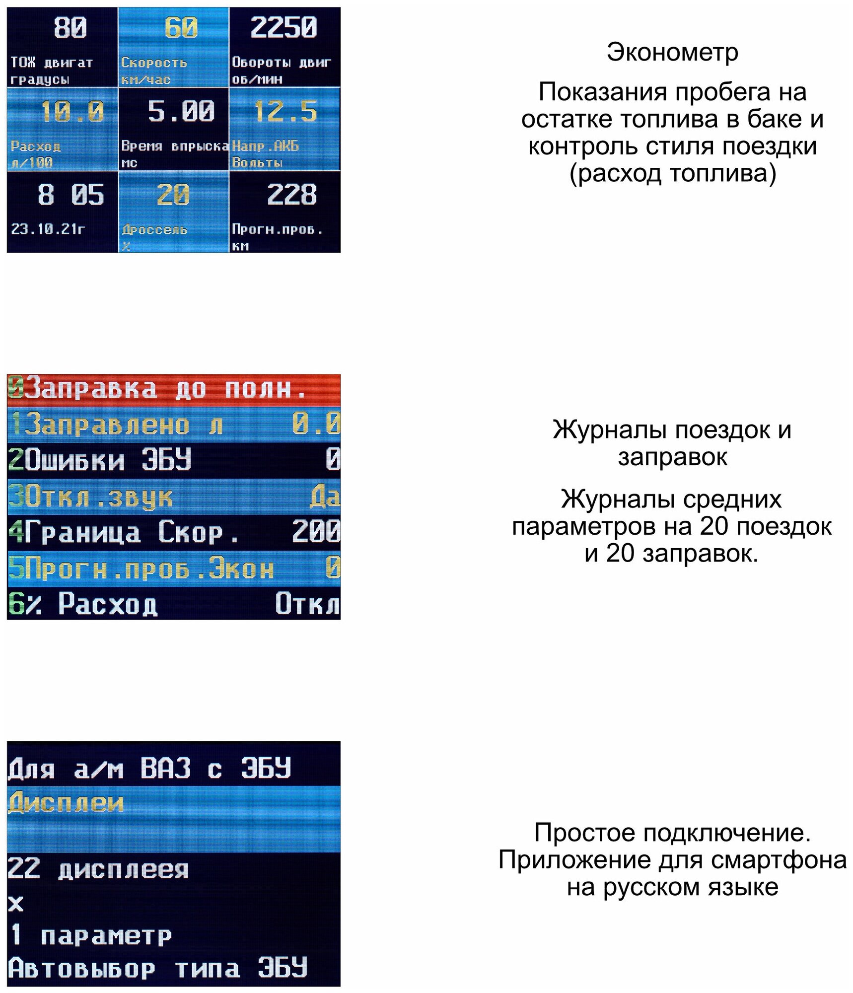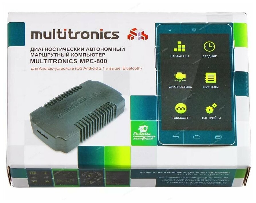 Designed for installation on injection gasoline and diesel vehicles; works in conjunction with mobile and head devices running the Android operating system and with the presence of a Bluetooth communication module