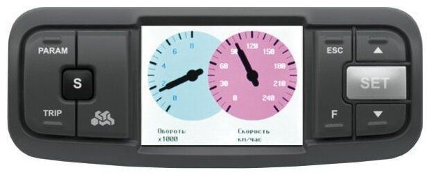On-board computer, display: graphic, text, installation: on the dashboard, OBD-II, parking sensors connection, work log, multi-display, oscilloscope, additional connection. modules, brightness adjustment, arrow indicators