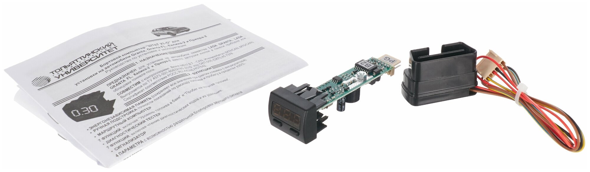 On-board computer, display: text, installation: in a regular place, OBD-II, brightness control