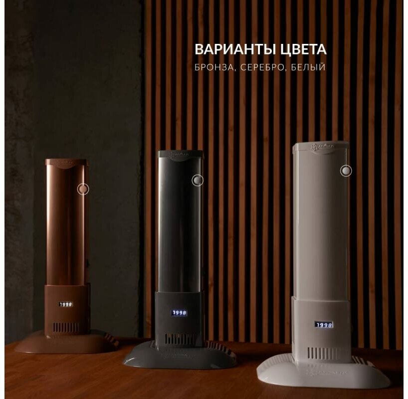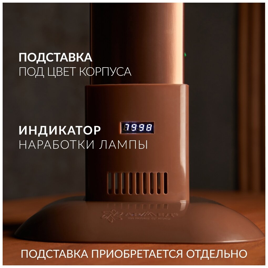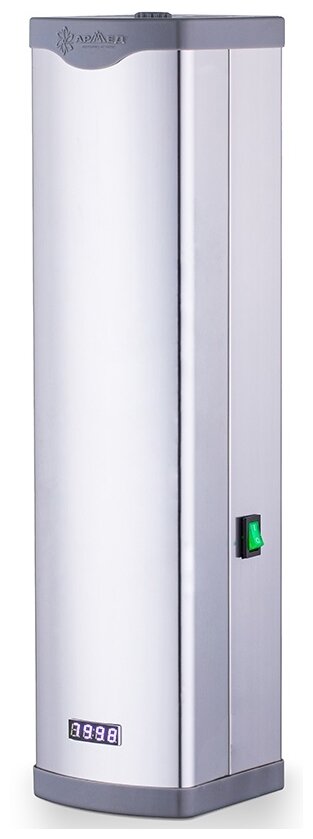 Irradiator type: closed; room categories: I, II, III, IV, V; recommended room volume: 30 m³; power consumption: 20 W; productivity: 30 m³/h; noise level: 40 dB; lamp base type: 2G11; number of lamps: 1x15 W in a computer