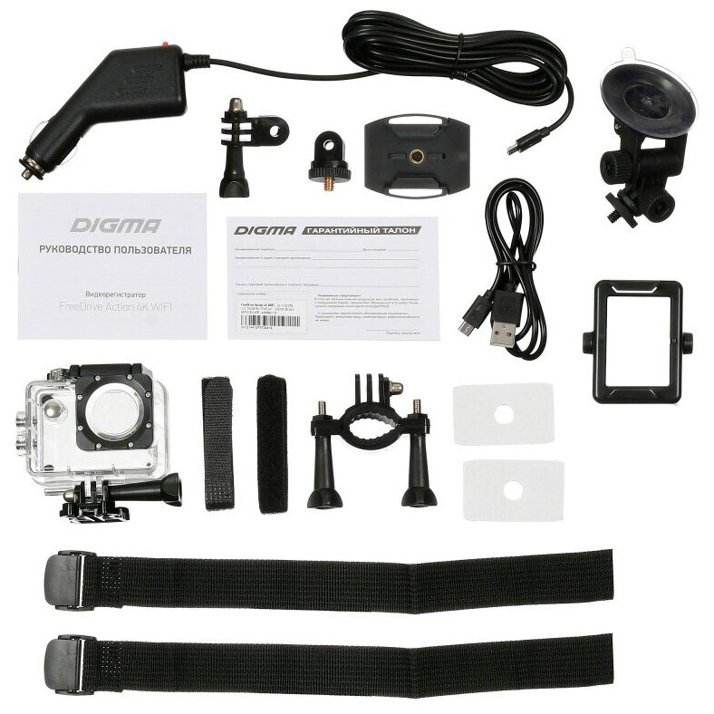 Included: car windshield mount, waterproof box, bike handlebar mount, main mount, helmet mount, bracket adapter 1, bracket adapter 2, headband, additional 3M tape, car charger, battery, frame, USB cable, user manual, warranty card