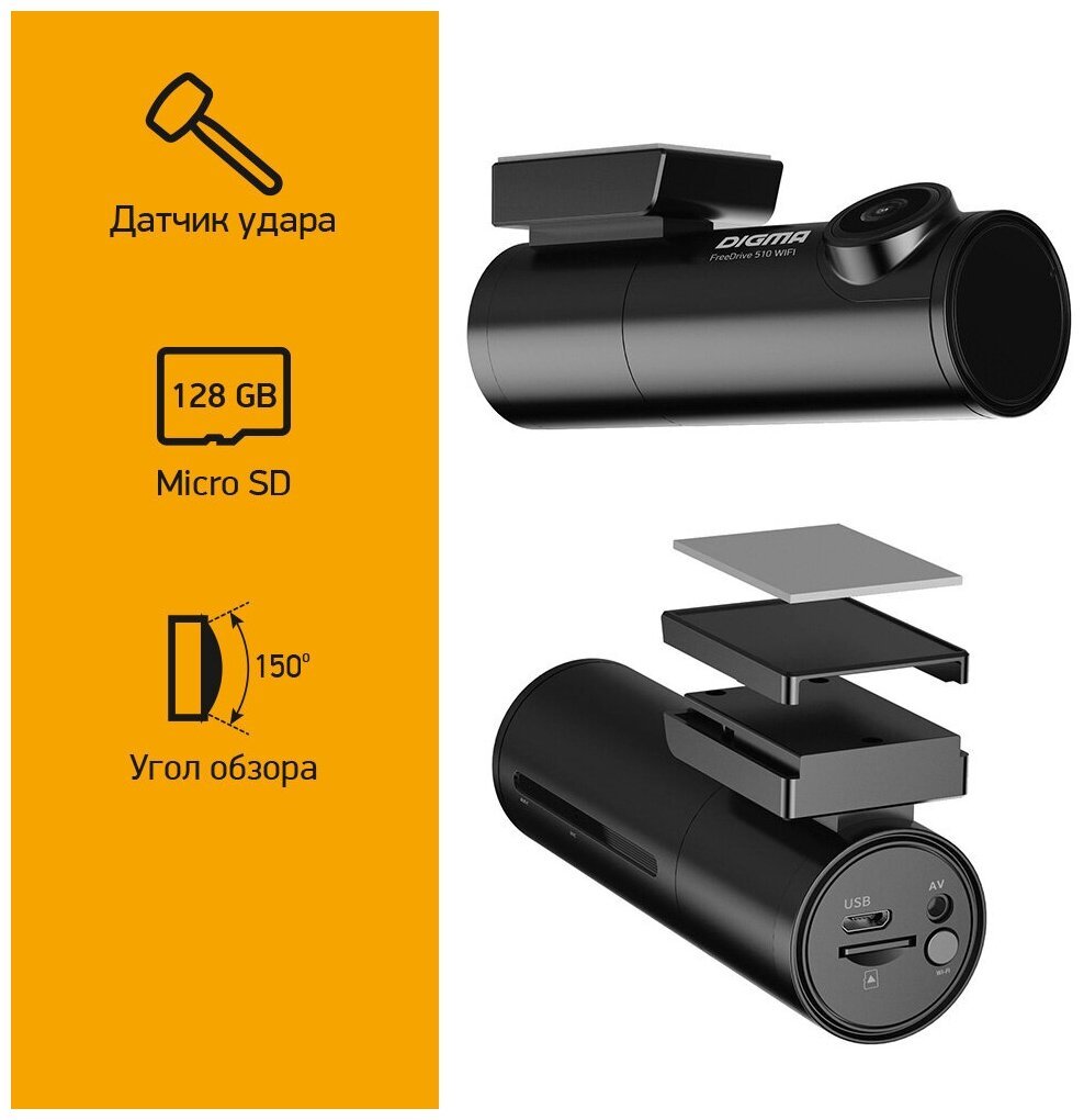Max. video recording resolution: 2304×1296, design: conventional, number of cameras: 1, shock sensor G-sensor, viewing angle diagonal: 150 °, built-in microphone, Wi-Fi, recording mode: cyclic, processor: MS8336N, time and date recording