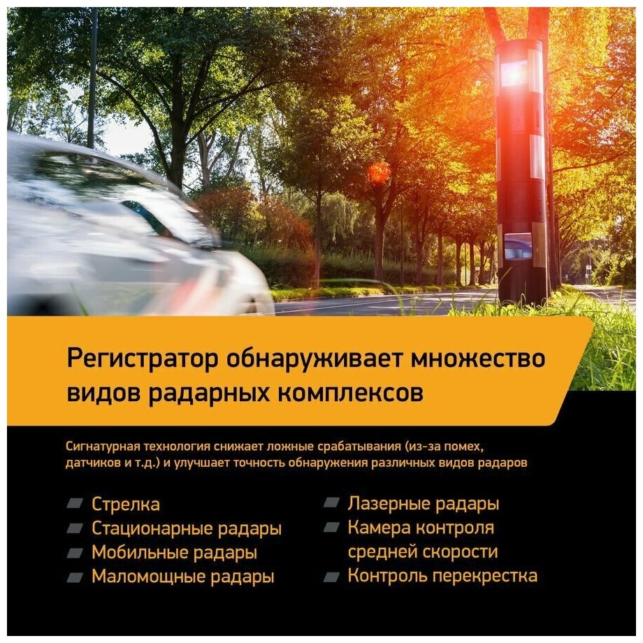 Radar detector, GPS, construction: conventional, shock sensor G-sensor, screen, recording mode: cyclic, processor: MSTAR MSC8339