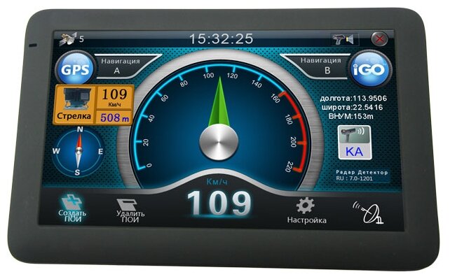 Radar detector with GPS navigator, user manual, glass mount bracket, case, screen cloth, USB cable, car cigarette lighter adapter 12V output 2 pcs.