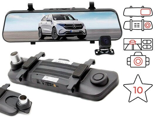 Max. video recording resolution: 1920 × 1080, design: rearview mirror, number of cameras: 2, shock sensor G-sensor, screen, viewing angle diagonal: 170 °, built-in microphone, Wi-Fi, recording mode: cyclic, processor: MT6735 ARM Quad -core 1.3 GHz, event