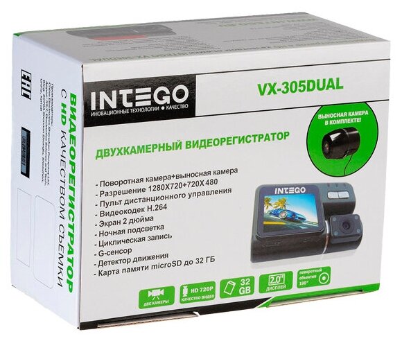 Max. video recording resolution: 1280 × 720, design: conventional, number of cameras: 2, G-sensor shock sensor, screen, diagonal viewing angle: 120 °, built-in microphone, recording mode: cyclic, motion detection in the frame, night mode, time recording a