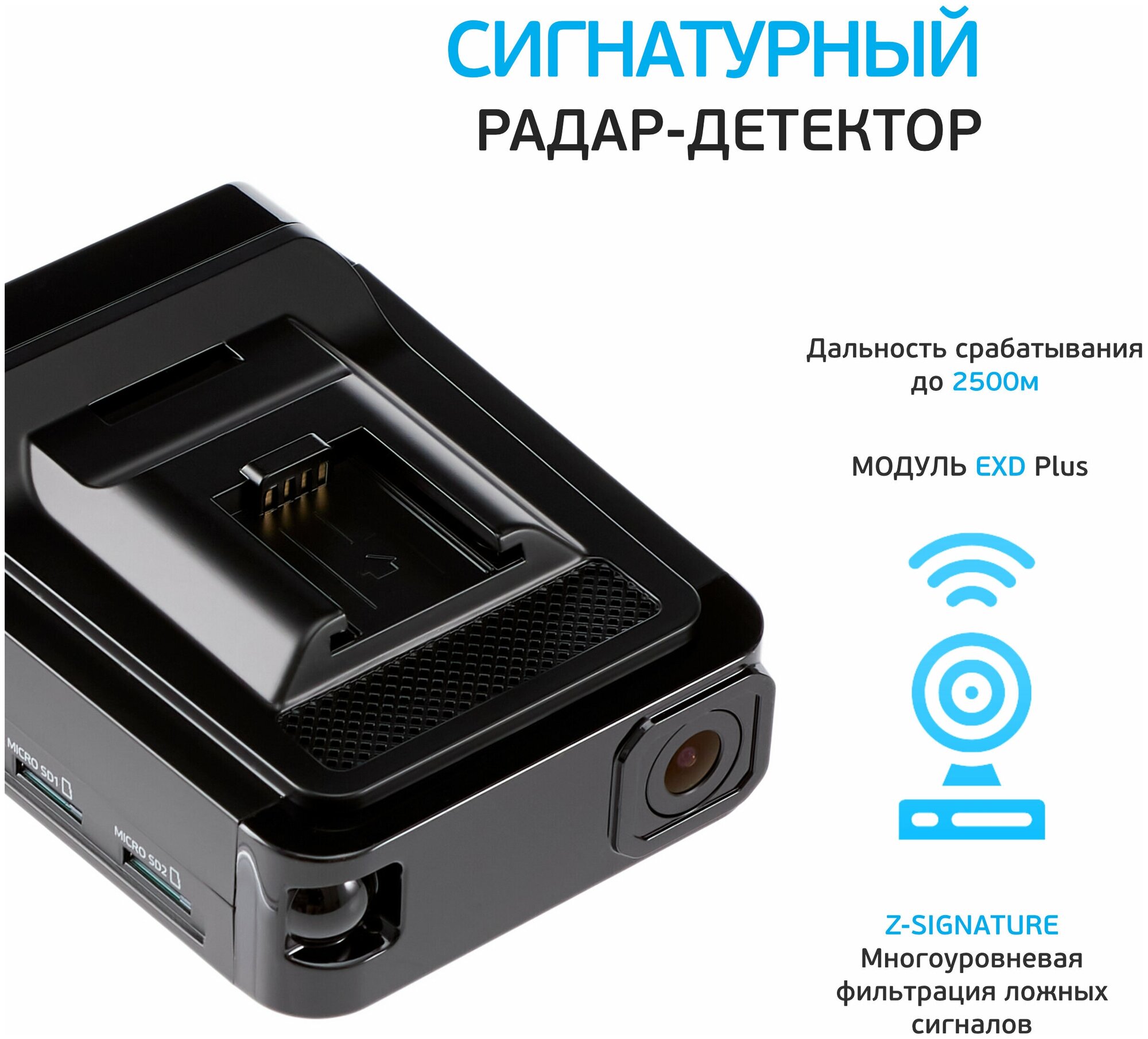 Detection of signals of a wide range of frequencies K, M, Ka, Laser, Strelka; detection of Multa Radar CD, CT, CD moving range M; selection of frequencies depending on the region of use of the Hybrid; notification of traffic control cameras; processing of