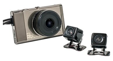 Max. video recording resolution: 1920×1080, design: conventional, number of cameras: 3, shock sensor G-sensor, screen, viewing angle diagonal: 140 °, built-in microphone, recording mode: cyclic / continuous, motion detection in the frame, time and date re