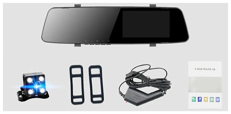 Max. video recording resolution: 1920×1080, design: rearview mirror, number of cameras: 2, screen, viewing angle diagonal: 170 °, built-in microphone, recording mode: cyclic, processor: Novatek NTK 96650, motion detection in the frame, night mode, recordi