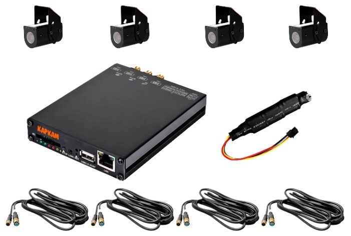 Short circuit protection, reverse polarity protection, overload protection, interfaces: RS 485 / RS 232, 4 cameras with built-in microphone "KARKAM KAM-110" included
