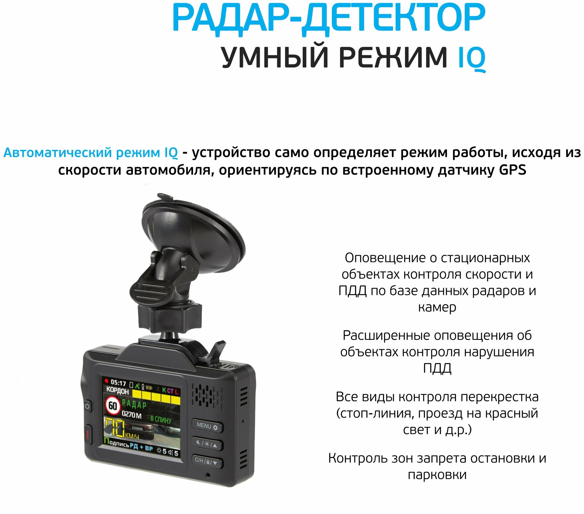 Suction cup, voice prompts, radar detector