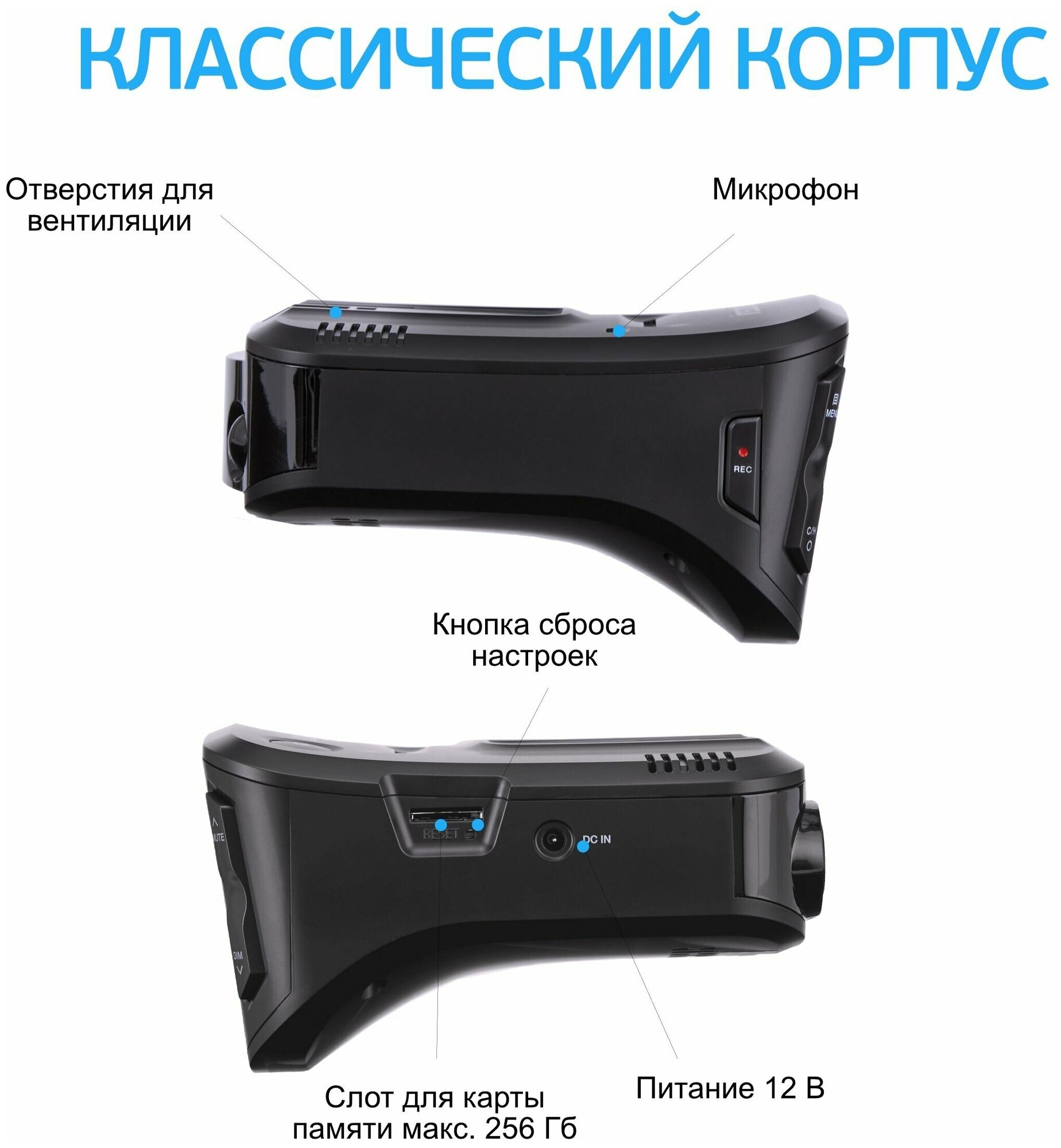 Radar detector, GPS, max. video recording resolution: 1920 × 1080, design: conventional, number of cameras: 1, shock sensor G-sensor, screen, viewing angle diagonal: 130 °, GLONASS, built-in microphone, recording mode: cyclic, processor: Ambarella A12A20,