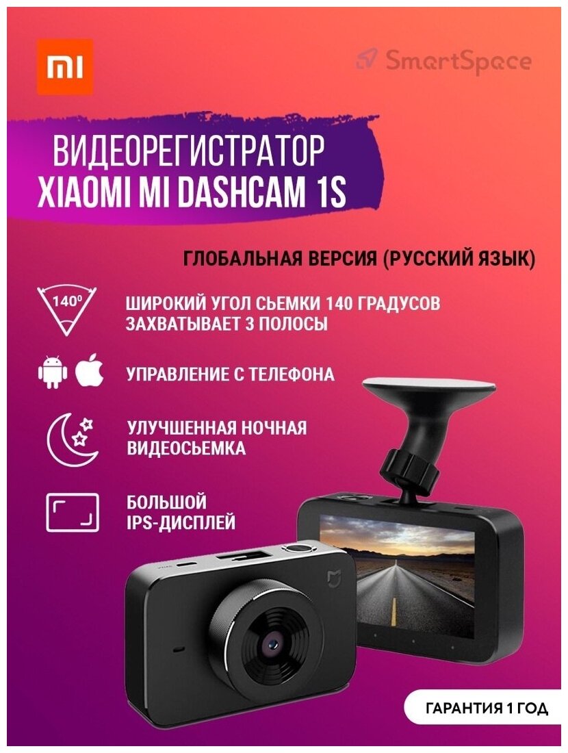 Parking monitoring, voice control, complete set: video recorder, charger, power cable, two electrostatic stickers, two stickers, cable spatula, mounting bracket, user manual