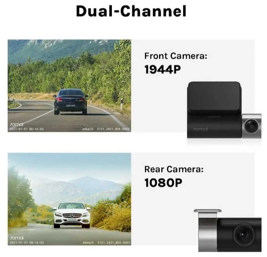 Xiaomi Dash Cam Pro Plus+Rear Cam Set A500S-1, 2 cameras, GPS, GLONASS