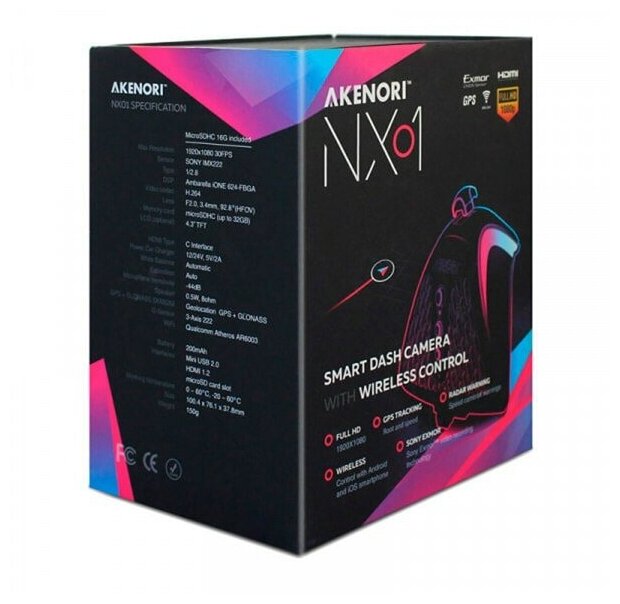 Max. video recording resolution: 1920×1080, built-in microphone, Wi-Fi, recording mode: cyclic/continuous, processor: Ambarella iOne, event recording to a separate file, night mode