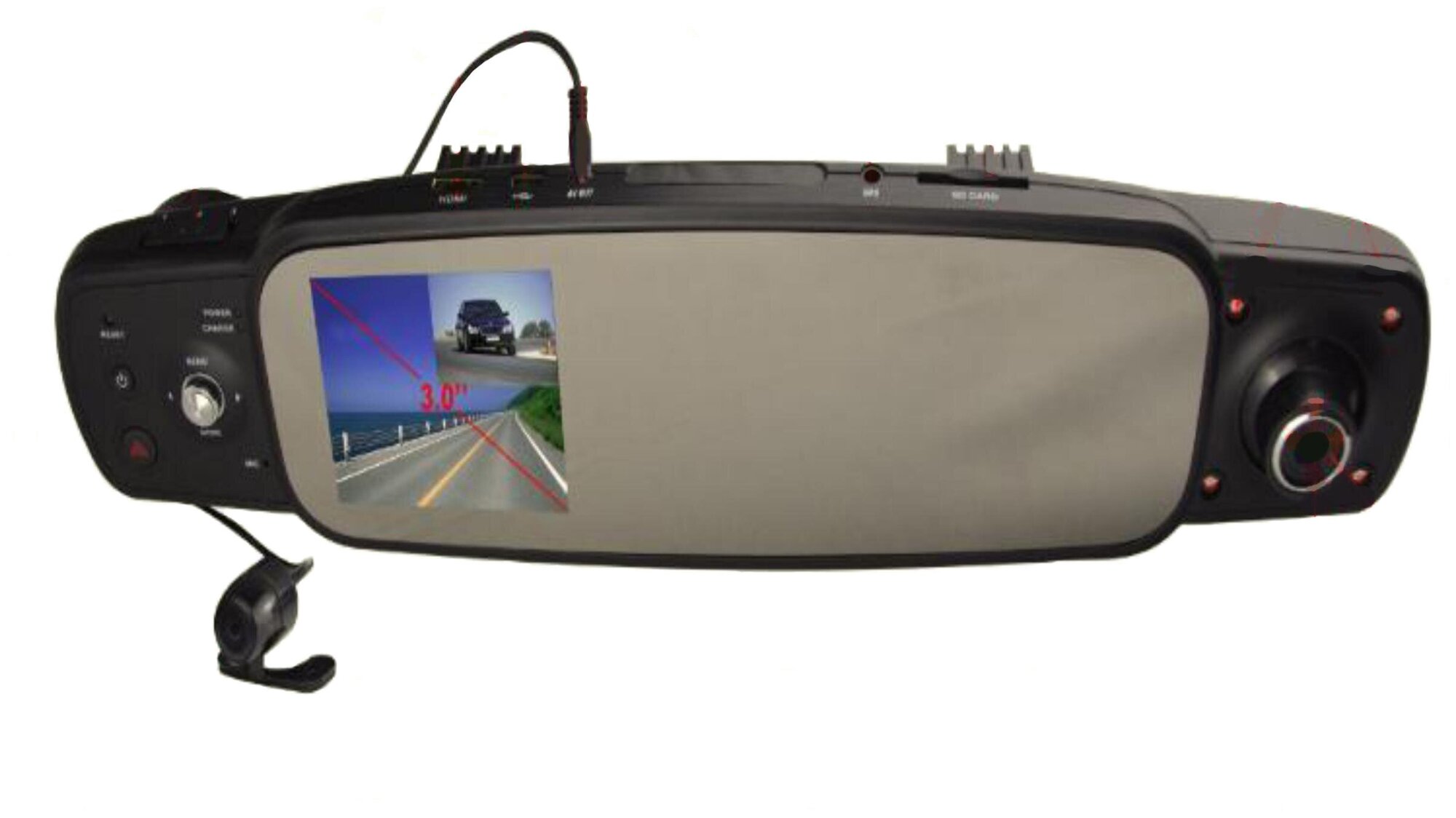 Max. video recording resolution: 1280×720, design: rearview mirror, number of cameras: 2, shock sensor G-sensor, screen, viewing angle diagonal: 120 °, built-in microphone, recording mode: cyclic, motion detection in the frame, night mode, recording time
