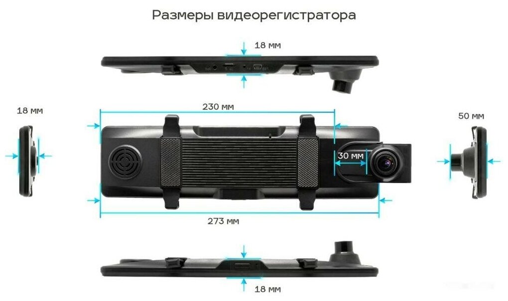 Description: Max. video recording resolution: 1920×1080, design: rearview mirror, number of cameras: 2, shock sensor G-sensor, screen, viewing angle diagonal: 140 °, GLONASS, built-in microphone, recording mode: cyclic, processor: GW100, event recording in separate fi