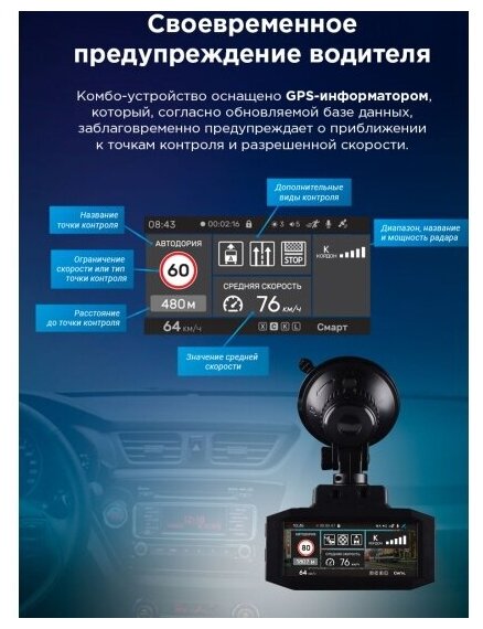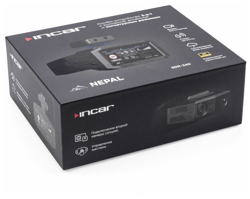 Radar detector, max. video recording resolution: 2304×1296, design: conventional, number of cameras: 2, shock sensor G-sensor, screen, viewing angle diagonal: 130 °, built-in microphone, recording mode: cyclic / continuous, processor: MSTAR MSC8339, event