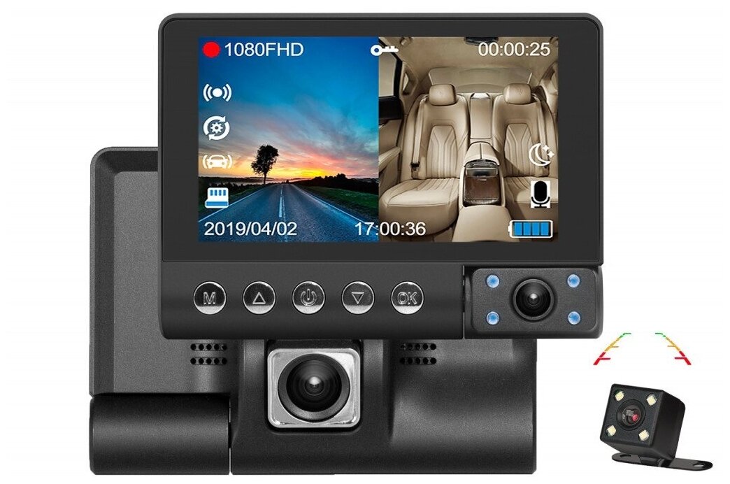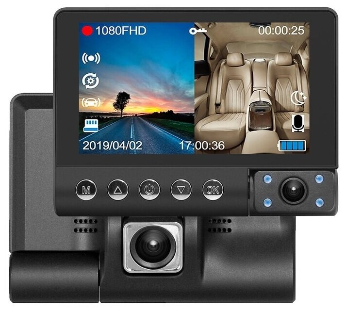Max. video recording resolution: 1920×1080, design: conventional, number of cameras: 3, shock sensor G-sensor, screen, viewing angle diagonal: 140 °, built-in microphone, recording mode: cyclic, processor: JL5601, motion detection in the frame, night mode