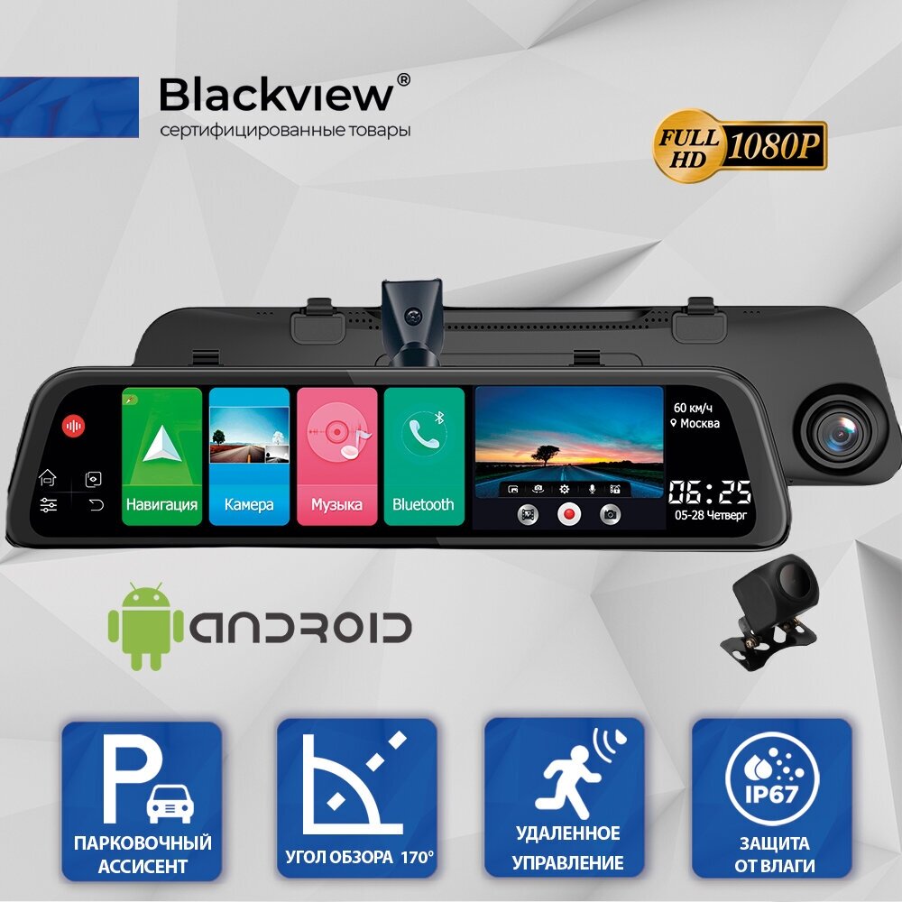 Blackview GX12 is a brand new mirror DVR with 12 inch touch screen and new 1.4GHz quad-core processor. The mirror works on the Android operating system! The mirror comes with a rear view camera 1920x1080 and is equipped with parking lines, when you turn o