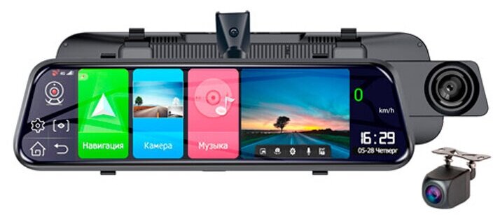 Max. video recording resolution: 1920×1080, design: rearview mirror, number of cameras: 2, shock sensor G-sensor, screen, built-in microphone, Wi-Fi, recording mode: loop, night mode, time and date recording