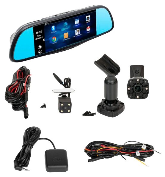 Max. video recording resolution: 1920×1080, design: rearview mirror, number of cameras: 2, shock sensor G-sensor, screen, viewing angle diagonal: 148 °, built-in microphone, Wi-Fi, recording mode: cyclic, processor: Allwinner A33, night mode