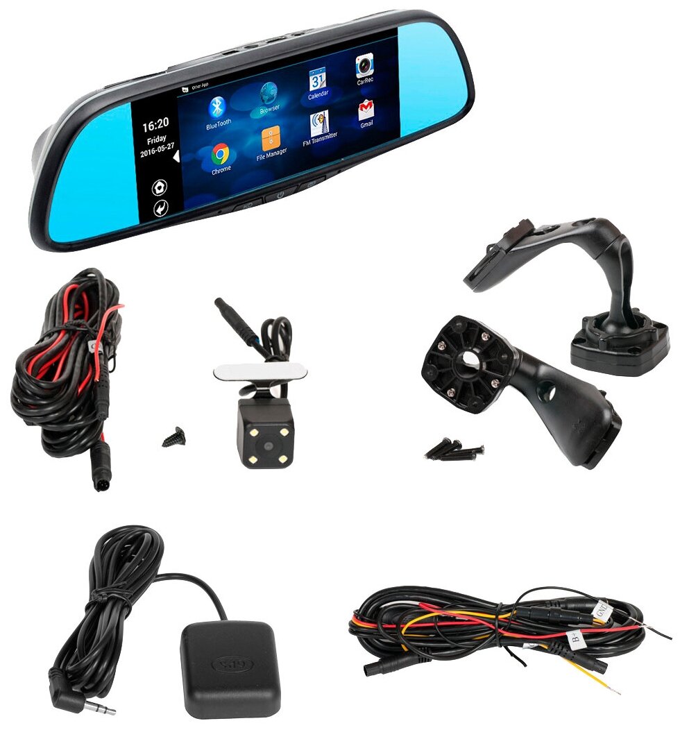Max. video recording resolution: 1920×1080, design: rearview mirror, number of cameras: 2, shock sensor G-sensor, screen, viewing angle diagonal: 148 °, built-in microphone, Wi-Fi, recording mode: cyclic, processor: Allwinner A33, night mode