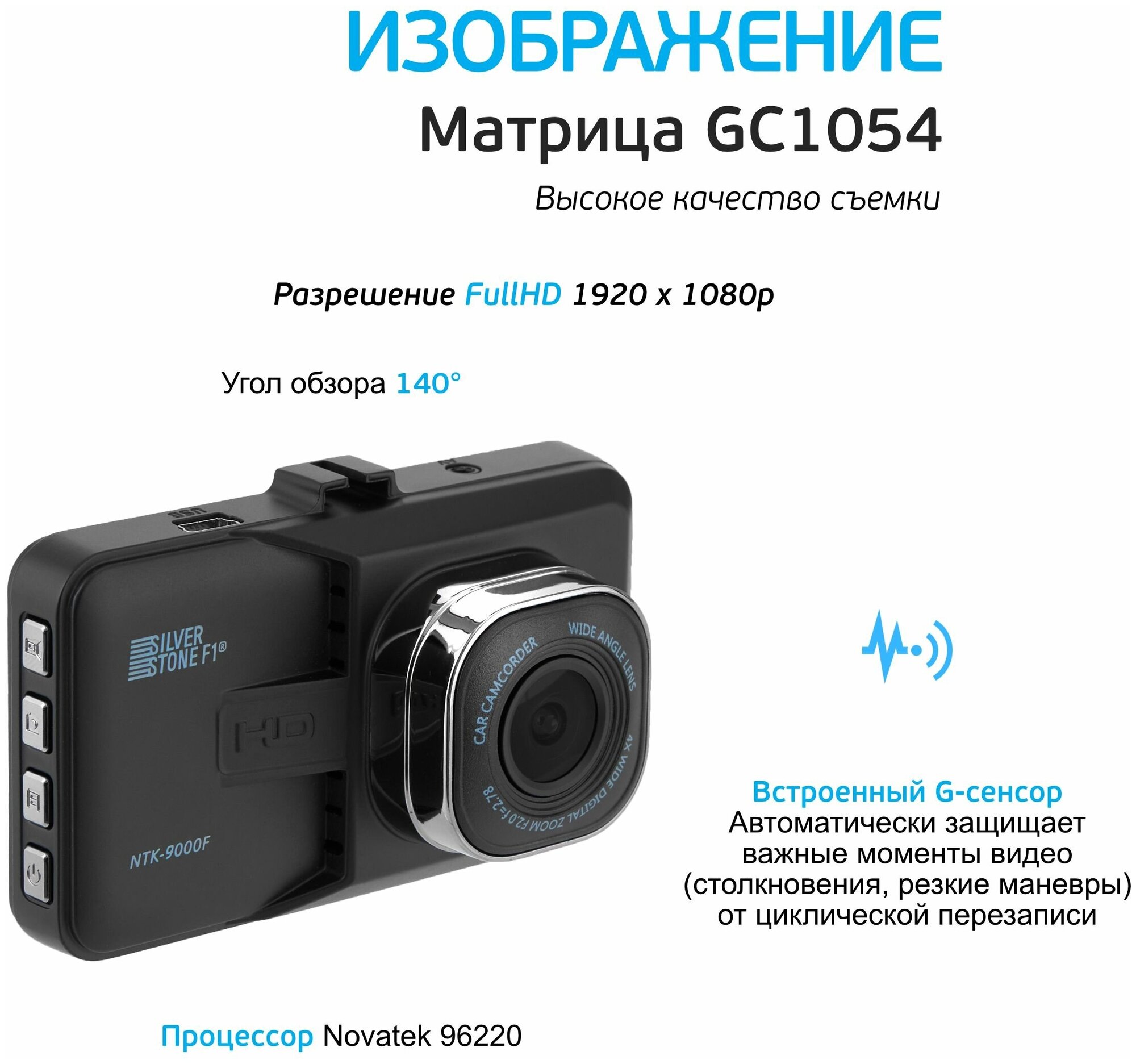Max. video recording resolution: 1920×1080, design: conventional, number of cameras: 1, shock sensor G-sensor, screen, viewing angle diagonal: 140 °, built-in microphone, recording mode: cyclic / continuous, processor: Novatek NTK 96220, event recording i