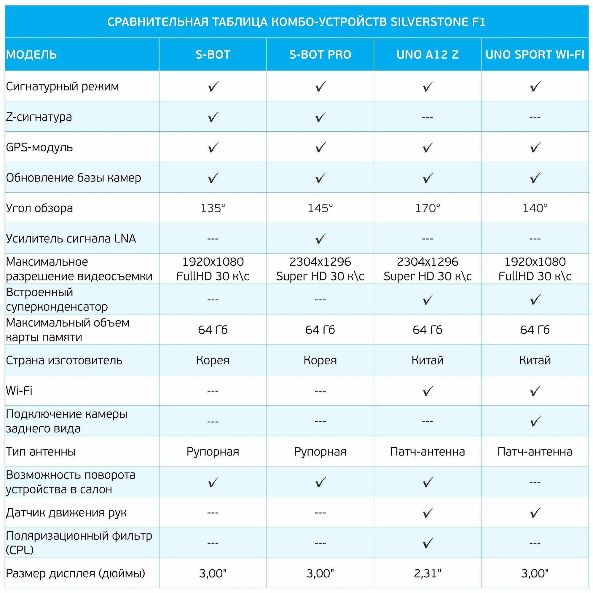 AIT8328Q processor; Radar detector bands: K band 24.150 GHz ± 100 MHz, Ka band 34.700 GHz ± 1300 MHz, Ku band 13.450 GHz ± 50 MHz, X band 10.525 GHz ± 50 MHz, laser radiation detector 800-1100 nm; viewing angle of the laser detector 180°; support for Ultr