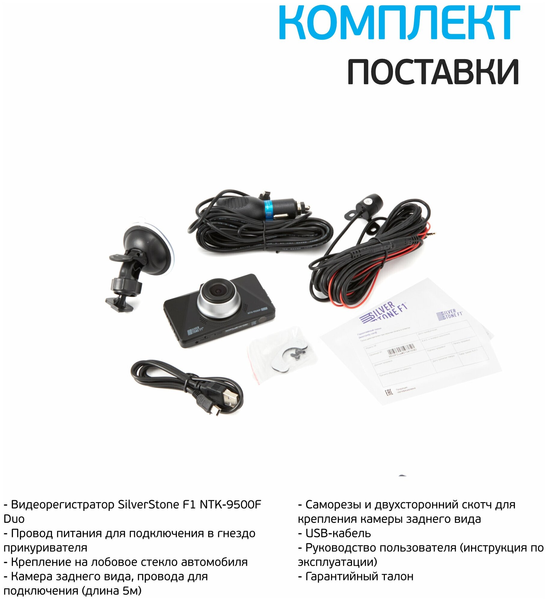 Design: regular, number of cameras: 2, shock sensor G-sensor, built-in microphone, recording mode: cyclic, motion detection in the frame, time and date recording
