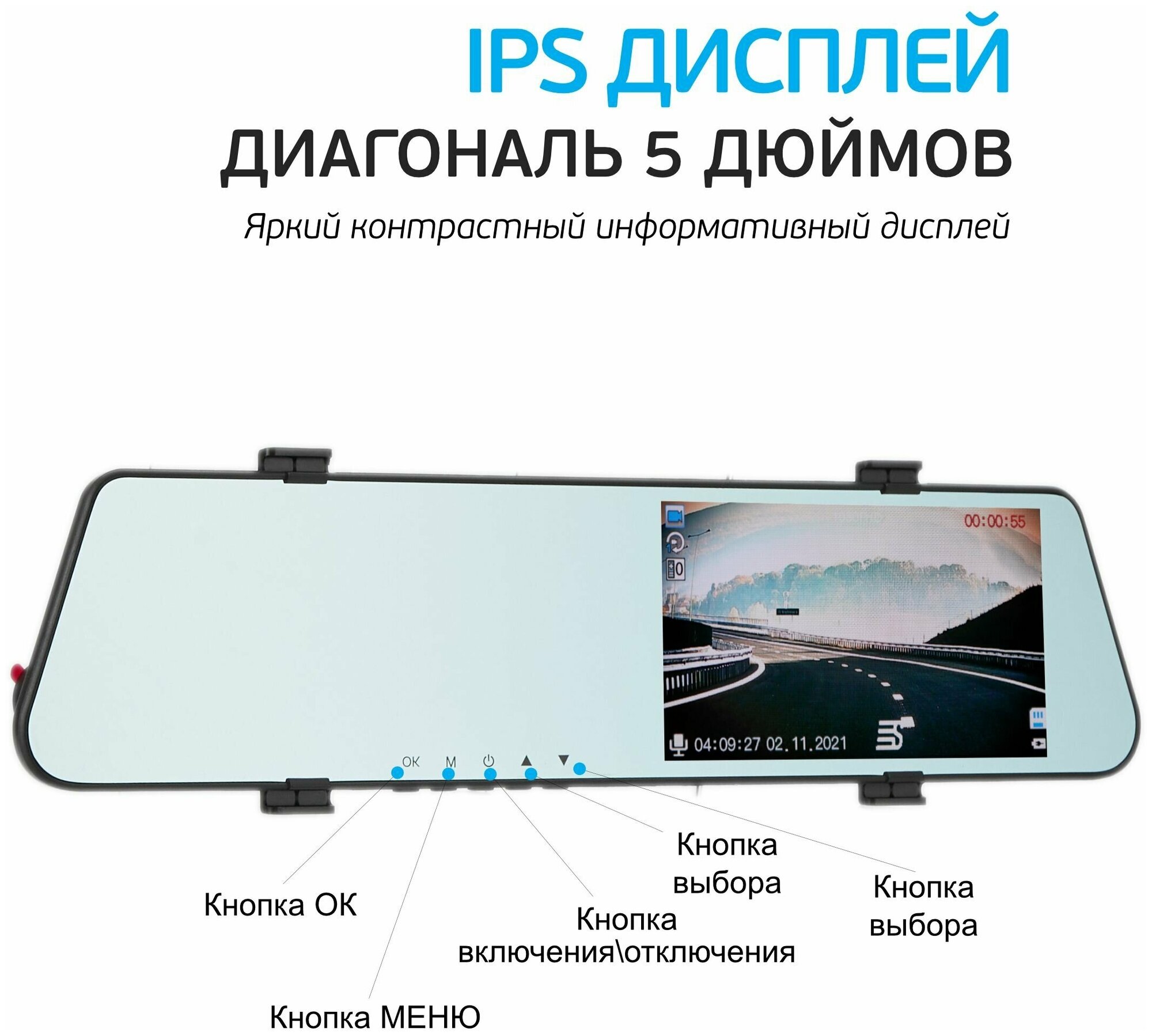 Max. video recording resolution: 1920×1080, design: rearview mirror, number of cameras: 2, shock sensor G-sensor, screen, viewing angle diagonal: 140 °, built-in microphone, recording mode: cyclic, processor: JIELI5211, event recording to a separate file