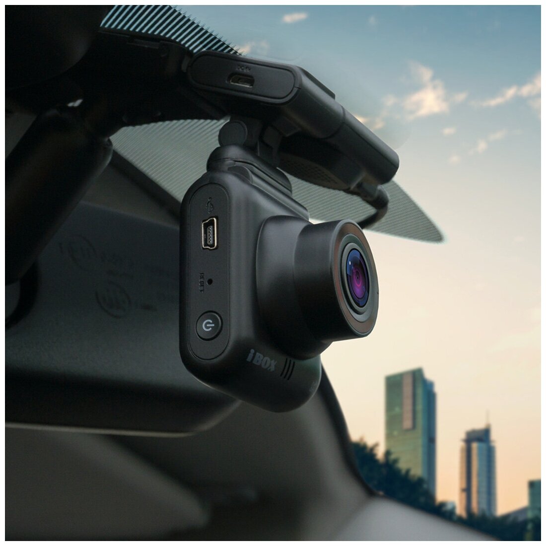 Complete set: iBOX Epic WiFi GPS, GPS module, magnetic mount with pass-through power on 3M adhesive tape, adapter with wire for connecting DC 12-24V power, USB cable, user manual, warranty card, user manual