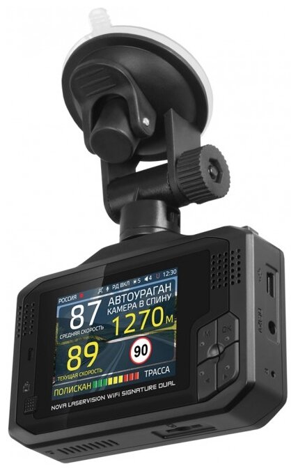 Base of police radars of the Russian Federation, Europe and the CIS; operating modes of the radar detector: Smart, Megapolis, Quiet City, City, Highway, Turbo; complete set: Nova LaserVision WiFi Signature Dual combo device, swivel suction cup mount, adap