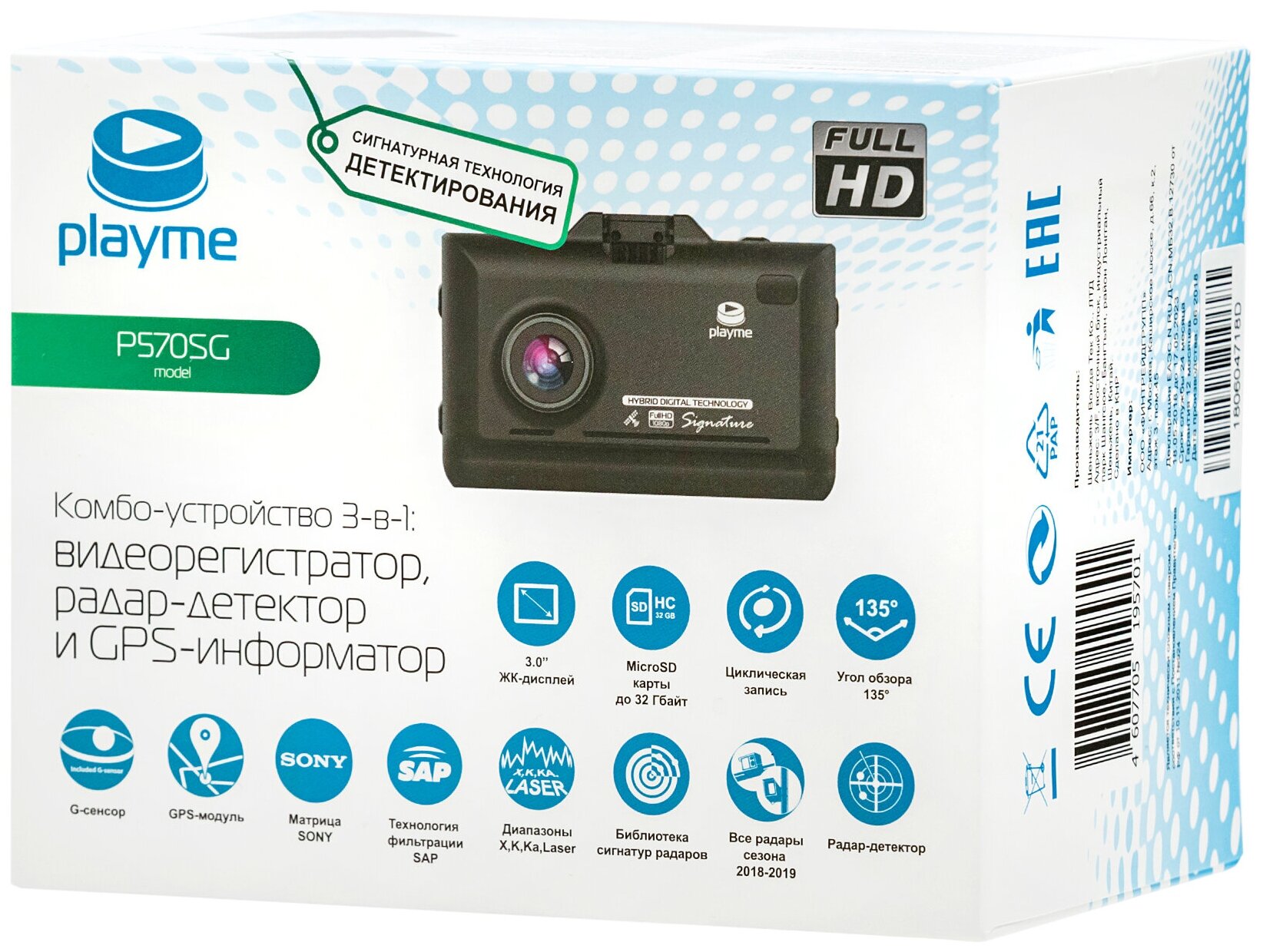 Radar detector, max. video recording resolution: 1920×1080, design: conventional, number of cameras: 1, shock sensor G-sensor, screen, viewing angle diagonal: 135 °, built-in microphone, processor: Novatek NT 96658, time and date recording