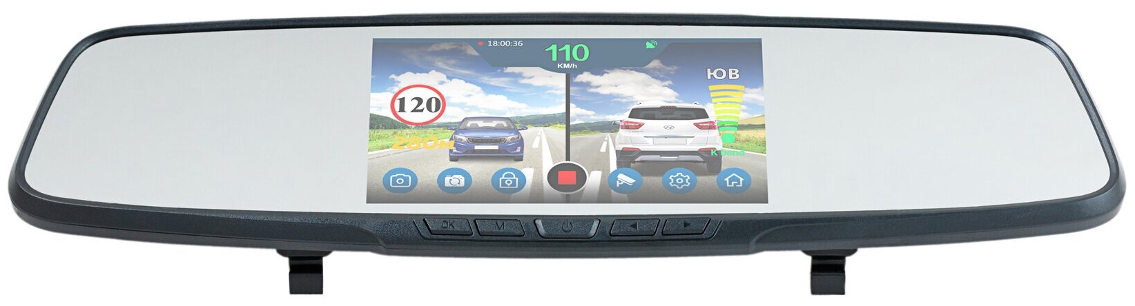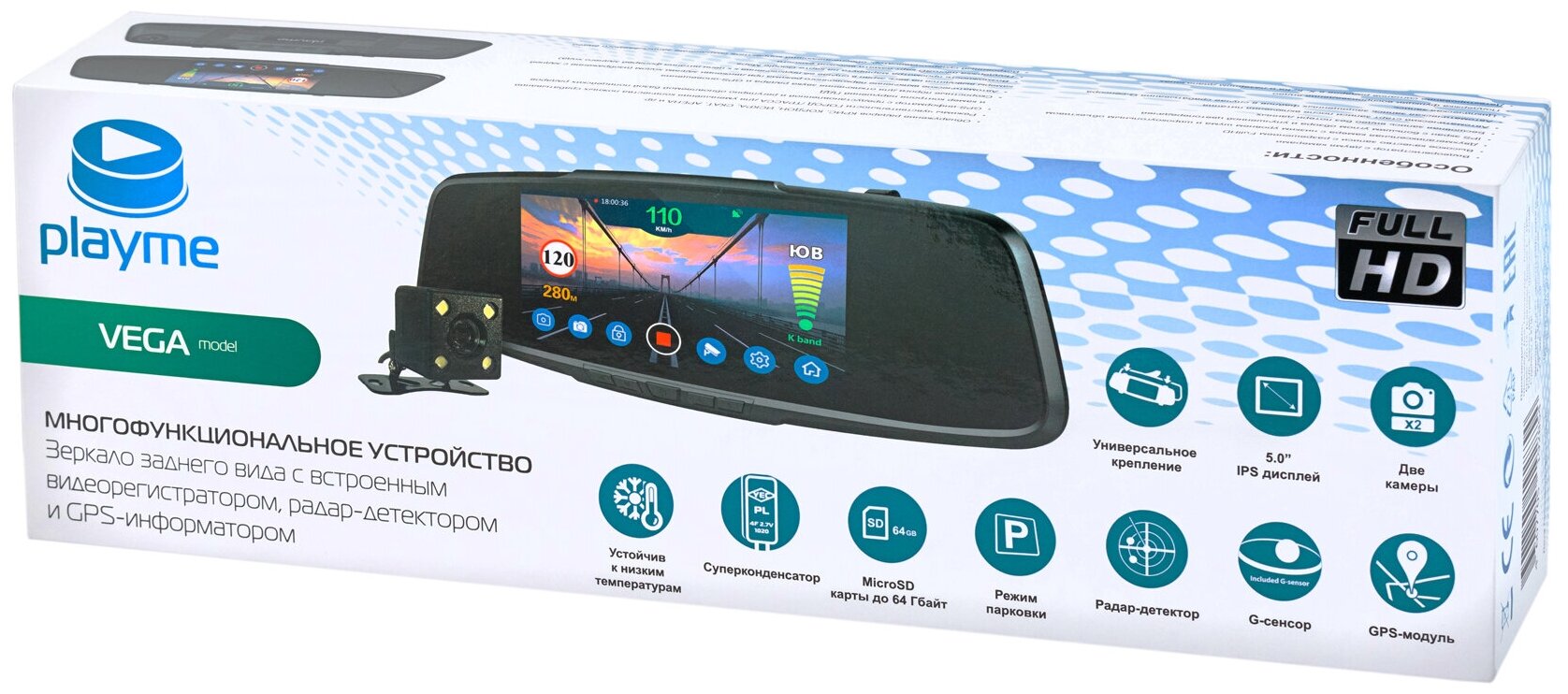 Radar detector, max. video recording resolution: 1920×1080, design: rear-view mirror, number of cameras: 2, shock sensor G-sensor, screen, built-in microphone, recording mode: cyclic, processor: MStar MSC8328, event recording to a separate file, motion de